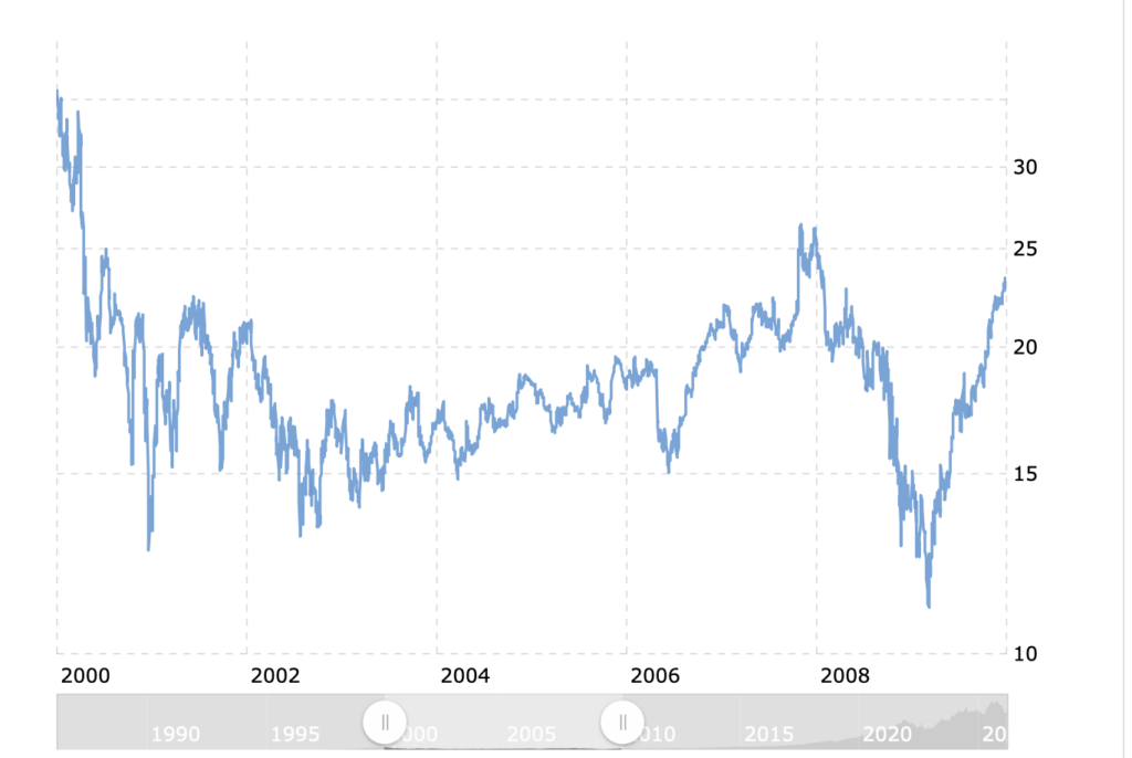 Az eredmény itt van az ábrán: közel egy évtizeden át szinte semmit nem nő a cég értéke és árfolyama.