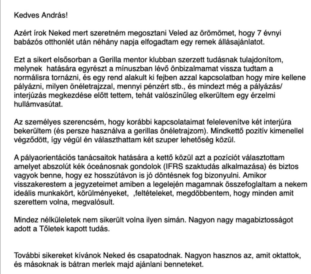 Tudom, hogy gyerek mellett nem könnyű még egy tornára sem eljutni, de gondolj csak bele: Napi 30 perc angol tanulással 1,5 év alatt a nulláról felsőfokig is eljuthatsz a nyelvtudásban. Az önfejlesztés nem csak az önbizalmadnak tesz jót, de akár egy komplett új szakmát is kitanulhatsz, ahol sokkal rugalmasabban, hibrid munkavégzésben, vagy 100% távmunkában is dolgozhatsz és még anyagilag is megbecsülnek.